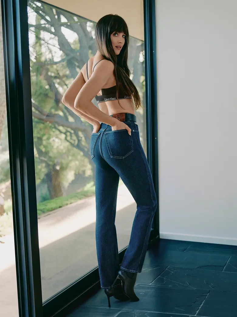 Her personal style reflects that same sensibility. Off duty, she gravitates toward relaxed tailoring, vintage denim, and pieces that appear lived-in rather than overly styled. The aesthetic aligns naturally with Calvin Klein’s design philosophy.