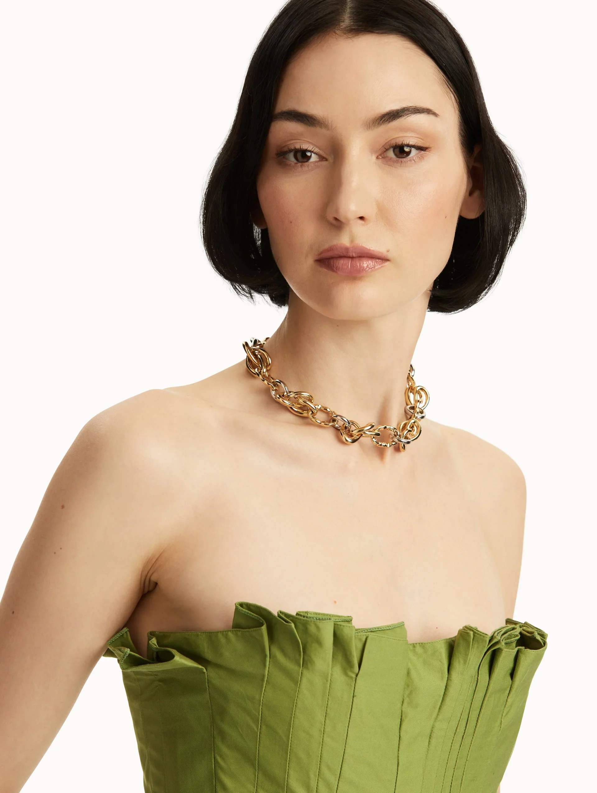 This season’s edit celebrates exactly that: strong shapes, intelligent construction, and those sculptural touches that turn a clean look into a statement. It’s jewelry with presence. Jewelry that frames the woman, not the other way around.