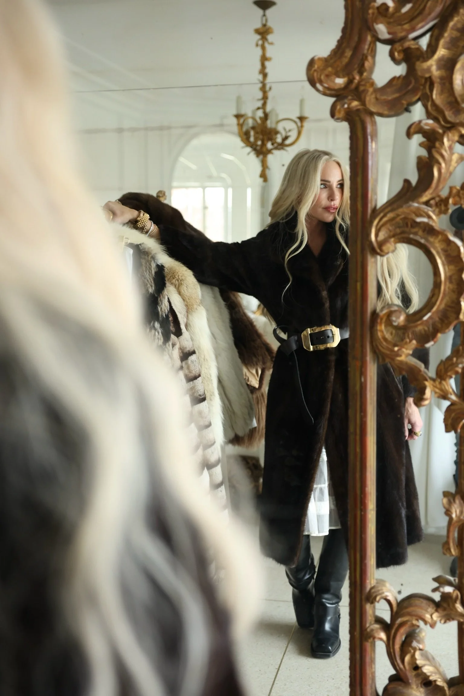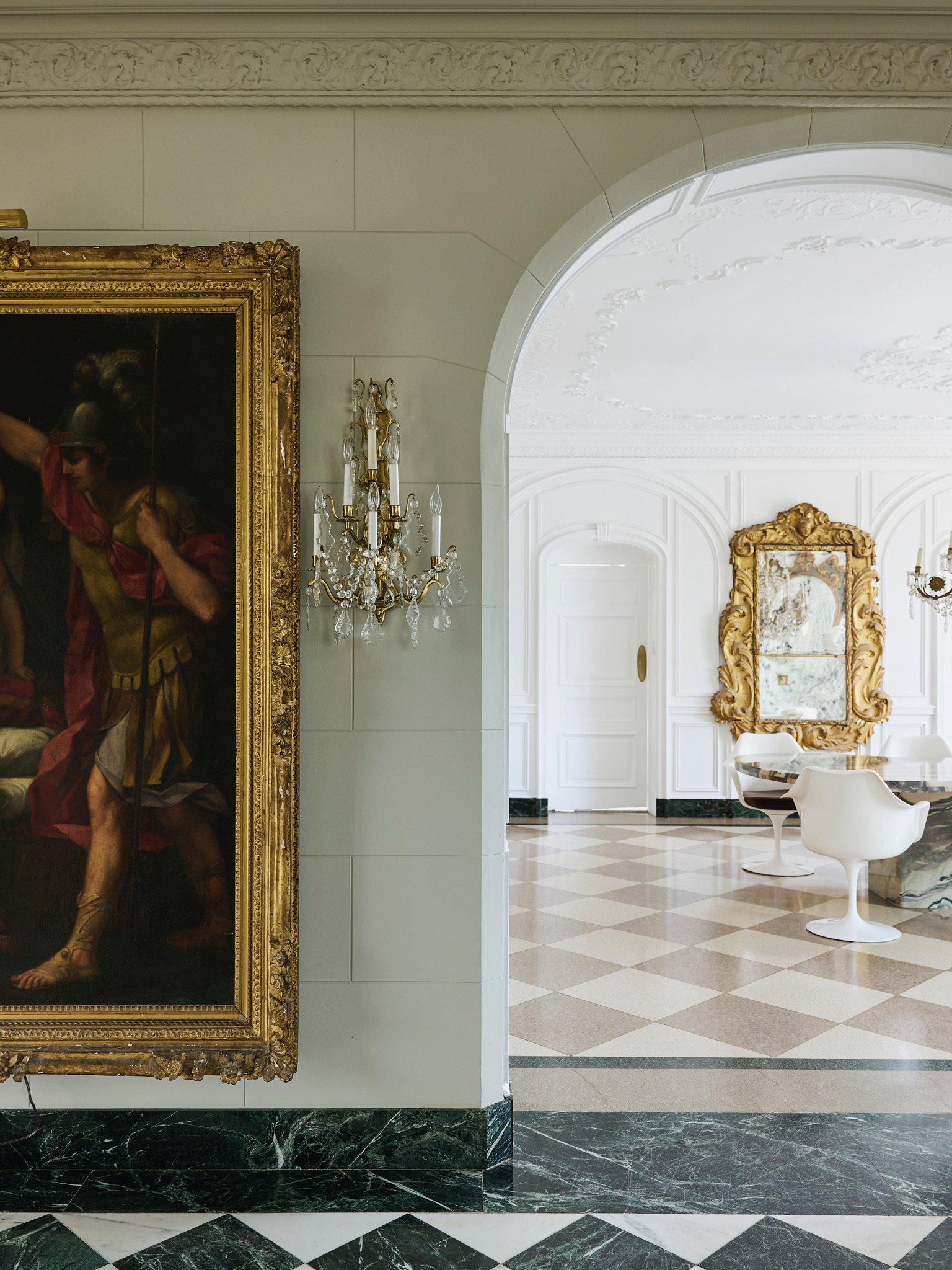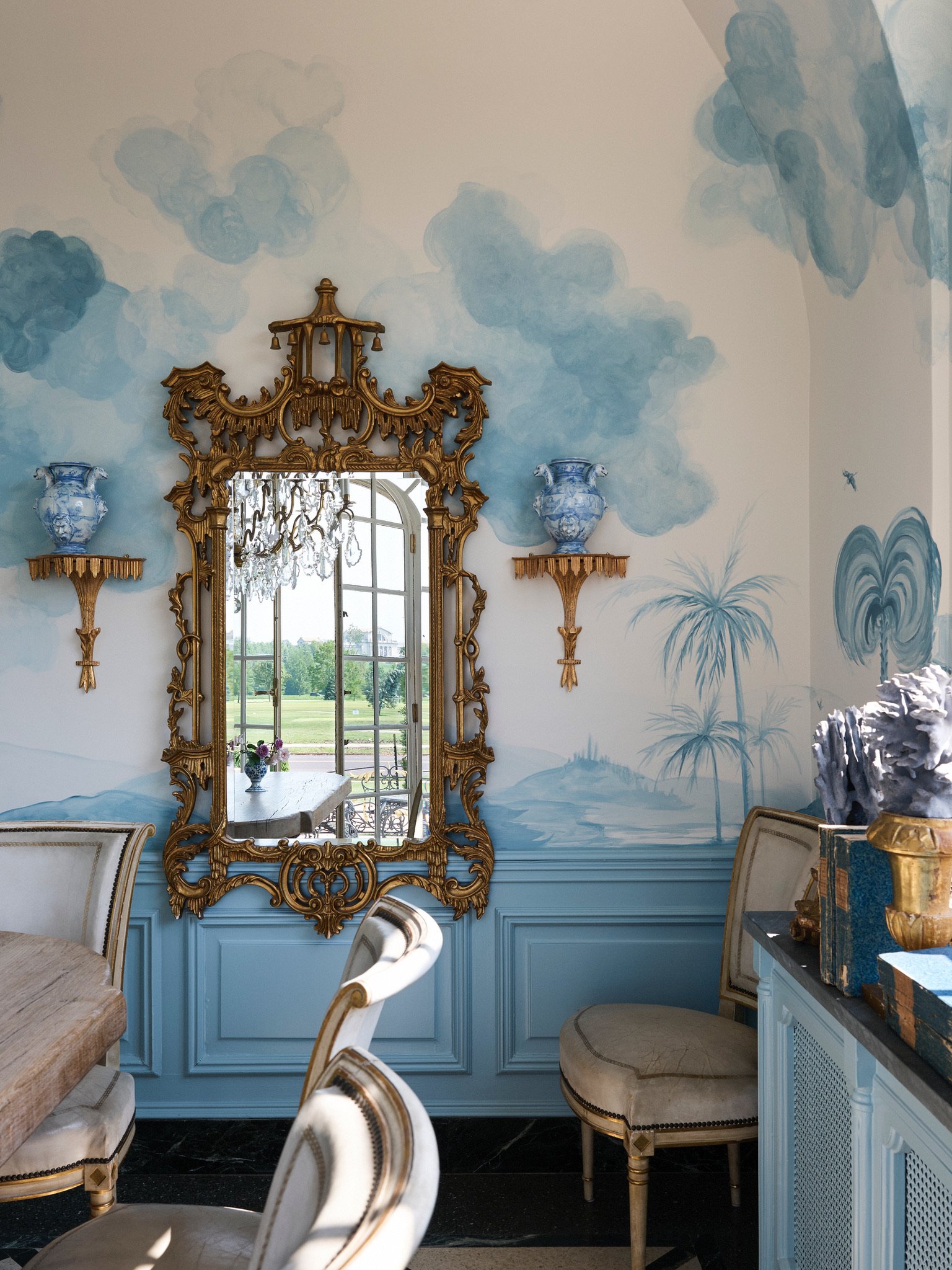 Her sourcing process follows instinct rather than lists. She allows the right pieces to find her. She gravitates toward bold scale. Mirrors that command a wall. Chandeliers that anchor a ceiling. Tables that hold a room with authority. When the architecture can carry it, she follows that energy.